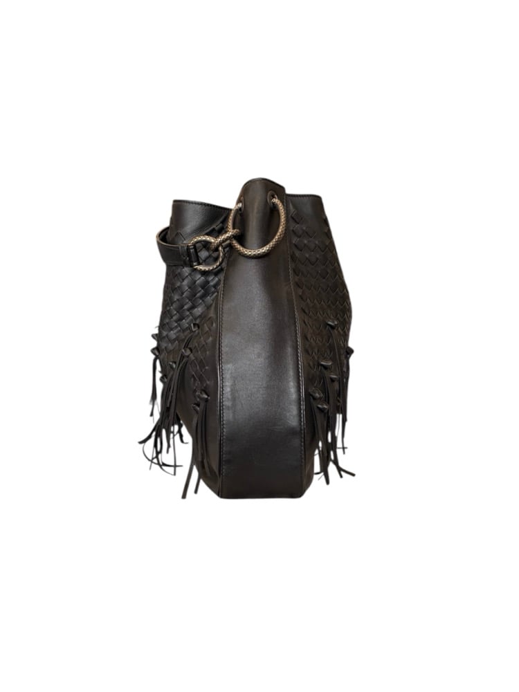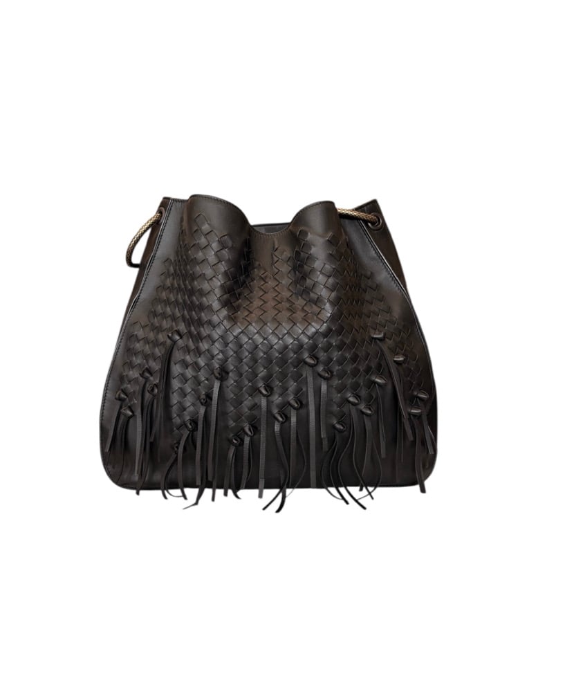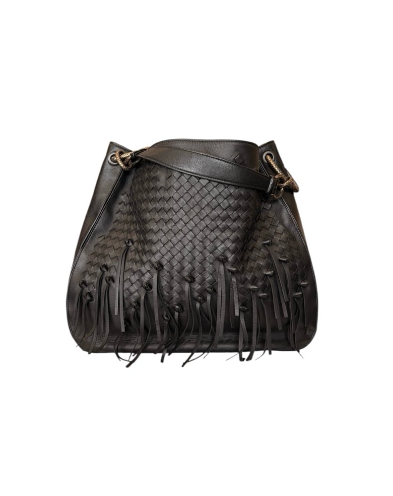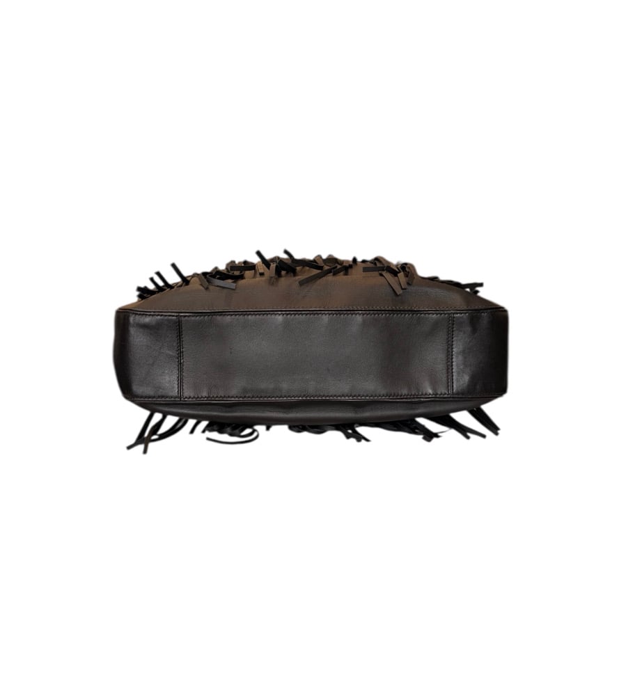 Bottega Veneta black loop hobo handbag with fringe. With burnished gold hardware. In pristine, barely used condition.
