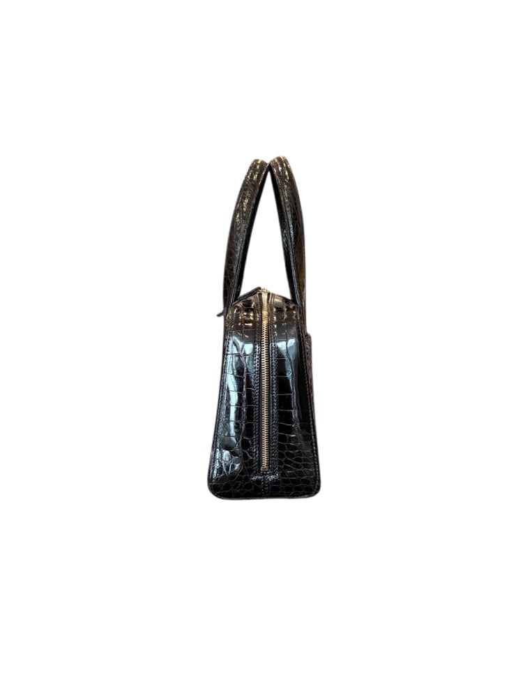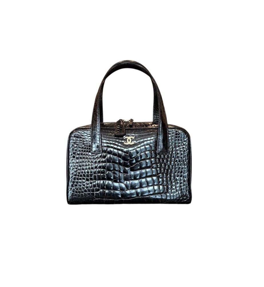 Chanel black alligator bowler handbag. With gold hardware. In pristine, barely used condition.