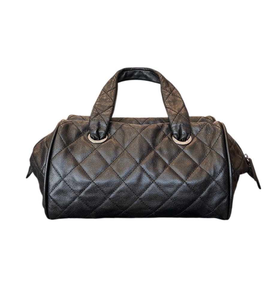 Chanel black timeless bowler handbag in caviar leather. With silver hardware. In excellent condition.