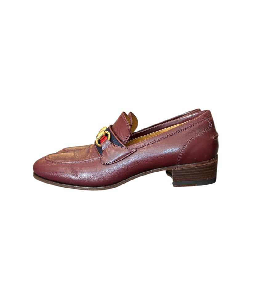 Gucci burgundy horsebit loafers. With gold hardware. In pristine never worn condition.